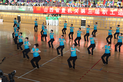 本次比赛是山西省直机关第三届职工运动会参赛人数最多的一项赛事,共有30家省直单位千余人参加了比赛。在《魅力恰恰》、《印度制造》、《回忆》三首激情悠扬的音乐声中,我所派出的30名运动员踏着轻快的舞步,翩翩起舞,优美的舞姿、精湛的技艺、漂亮优雅的服饰、编排大气的队形,尽展丰姿,魅力十足,博得了在场观众的阵阵喝彩与掌声。