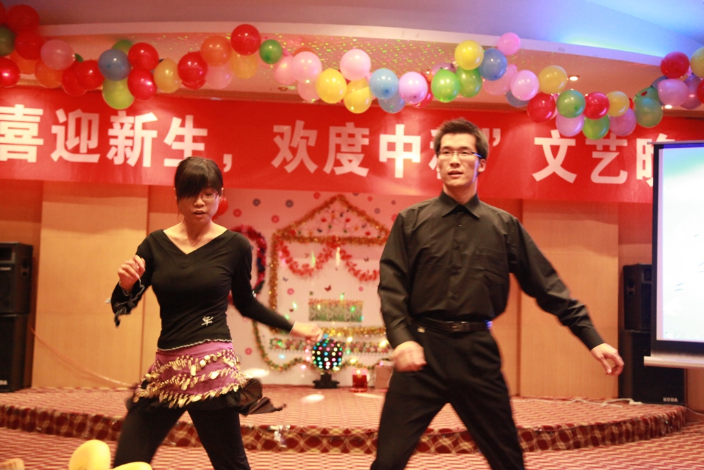 随后一曲高亢激昂的合唱《国家》开启了联欢会的序幕。舞蹈、器乐演奏、小品、相声……一个个节目精彩纷呈,联欢会现场笑声、喝彩声不断。由12名新生身着用彩色宣纸和塑料袋精心设计、编织的时装表演的时装秀让观众大开眼界,体现了煤化学子建设低碳生活的别出心裁。相声《你要折腾》紧密结合科研生活,既令人开怀又发人深省。手语表演《爱在心中》,诠释着爱在心中,和谐处处洋溢的理念,使联欢会主题得到了升华。