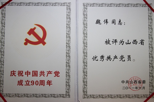 魏伟研究员作为多项国家级、院级、省级重要课题负责人,积极发挥党员先锋模范作用,将贯彻落实科学发展观体现在团队建设和科研工作中,严谨求实,勤奋刻苦,兢兢业业,为项目顺利完成提供了可靠的思想保障和动力源泉。因其成绩突出,先后获得国际优秀青年科学家奖、中科院宝钢教育基金优秀奖、中科院刘永龄奖、中石油技术创新二等奖、山西省直机关优秀共产党员、山西省直机关劳动模范、山西省研究生教育优秀指导教师等光荣称号。