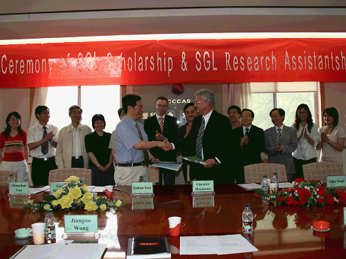 6月10日, 全球最大的炭石墨及相关材料供应商德国西格里集团(SGL Group – The Carbon Company)与中国科学院山西煤炭化学研究所(ICCCAS)正式签订奖学助研合作协议。西格里集团石墨材料与系统业务部主席温格尔博士(Dr. Gerd Wingefeld)、中国区董事总经理贺文博士(Dr. Guenter Hermann)以及中科院山西煤化所孙予罕所长、王建国副所长、吴东副所长等出席了签约仪式。
