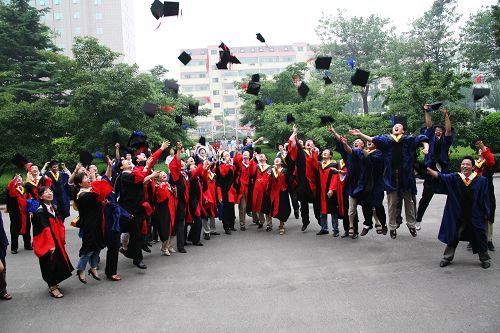 合影留念后,毕业生们把学位帽高高抛起,煤化所内欢声四溢。