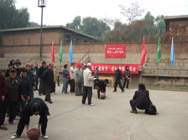 10月26日举行了室外7个项目的比赛。运动场上“弘扬中华民族敬老传统美德”、“发展老年文化体育事业”等标语随着彩旗迎风飘扬,所党委书记武文斌同志亲临运动场,代表所领导祝老同志们节日快乐,幸福长寿,并鼓励老同志们积极参与强身健体活动,保持身心健康。这次运动会有360余人次参加了各个项目的比赛,其中有80多岁的离休干部,也有刚从工作岗位退下来的新成员,人人不甘示弱,纷纷跃跃欲试。离休干部庞素莲年年都积极参与,今年她又取得保龄球和投镖两项奖。80岁的离休干部杨贵林同志平时坚持锻炼身体,这次在“赶猪回家”的项目中,与60余岁老同志的成绩相差无几,充分展示了健康老人的精神风貌。