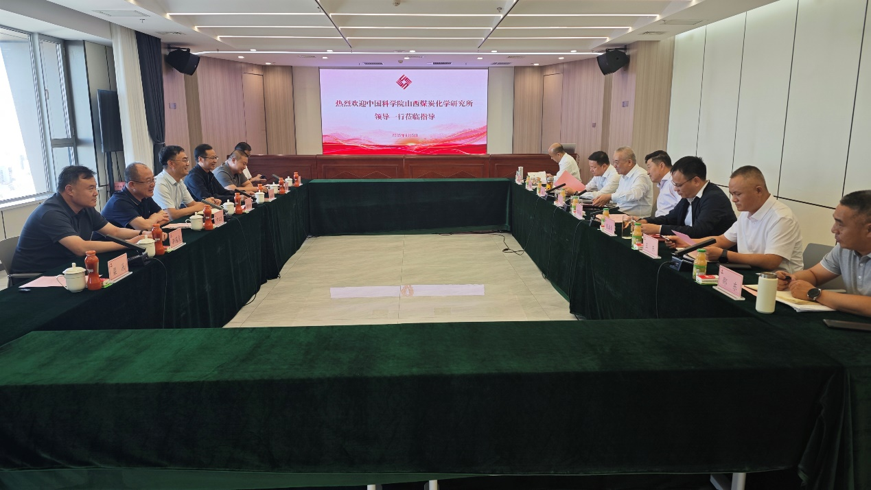 在中新建能矿集团,张寿春介绍了山西煤化所基本情况,并就双方可能开展合作的方向提出建议。科技合作处副处长梁辰作山西煤化所所情介绍报告。中新建能矿集团党委书记、董事长冯立就进一步加深双方了解,推动双方合作提出期望与建议。