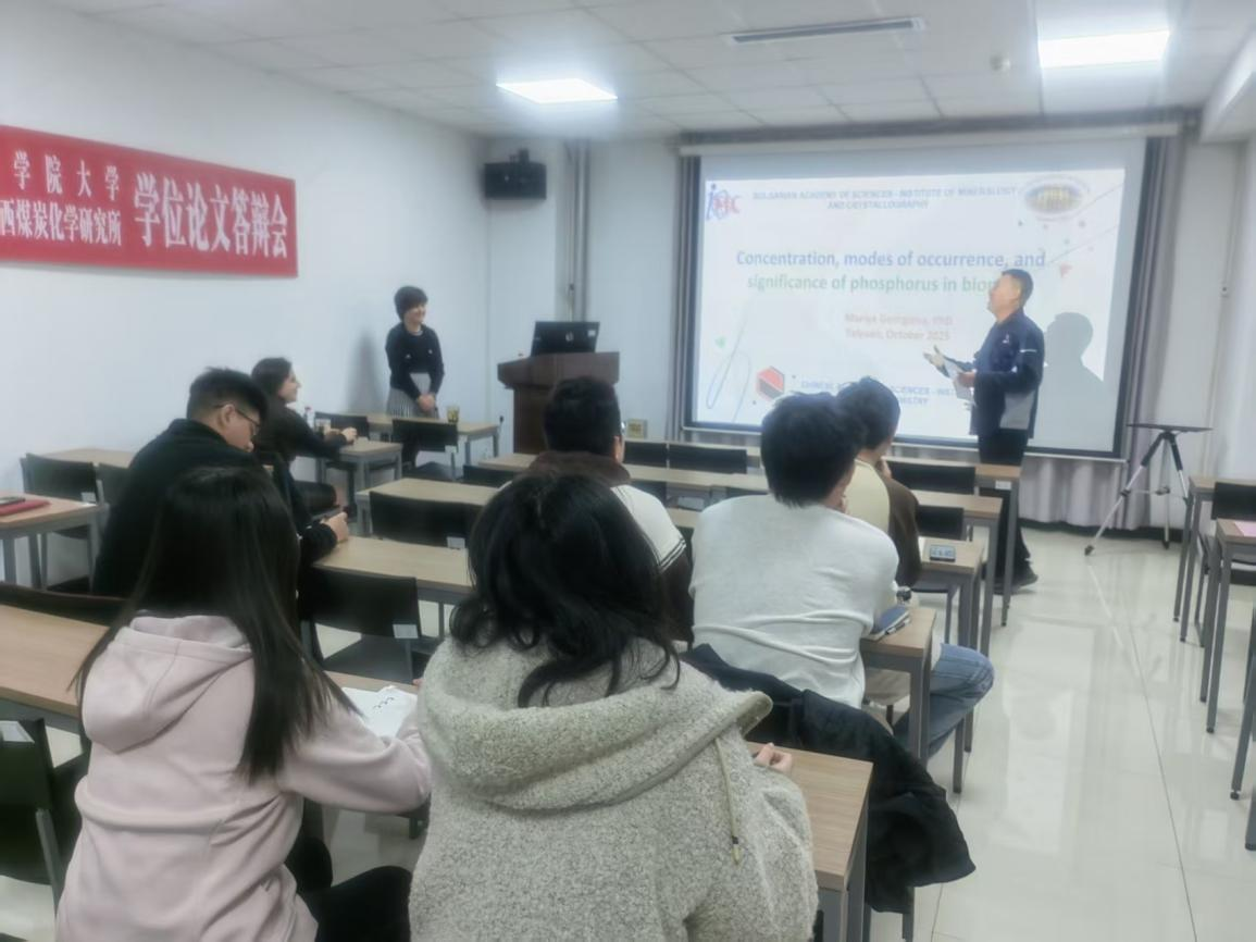 10月23日,应煤炭高效低碳利用全国重点实验室副主任白进邀请,保加利亚科学院矿物学与结晶学研究所 (IMC-BAS)Gergana Georgieva Velyanova 助理研究员、Mariya Georgieva 博士来实验室访问交流,并分别作题为“Content, Association, and modes of occurrence of mercury in coal and biomass and its behaviour during combustion”“Concentration, modes of occurrence, and significance of phosphorus in biomass”的学术报告。报告会由孔令学副研究员主持。