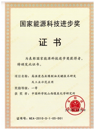 近日,国家能源局颁发了2010年度国家能源科技进步奖证书,中国科学院山西煤炭化学研究所与中科合成油技术有限公司、内蒙古伊泰煤制油有限公司、山西潞安煤基合成油有限公司联合完成的“高温浆态床煤制油关键技术研发及工业示范应用”项目喜获国家能源科技进步一等奖。