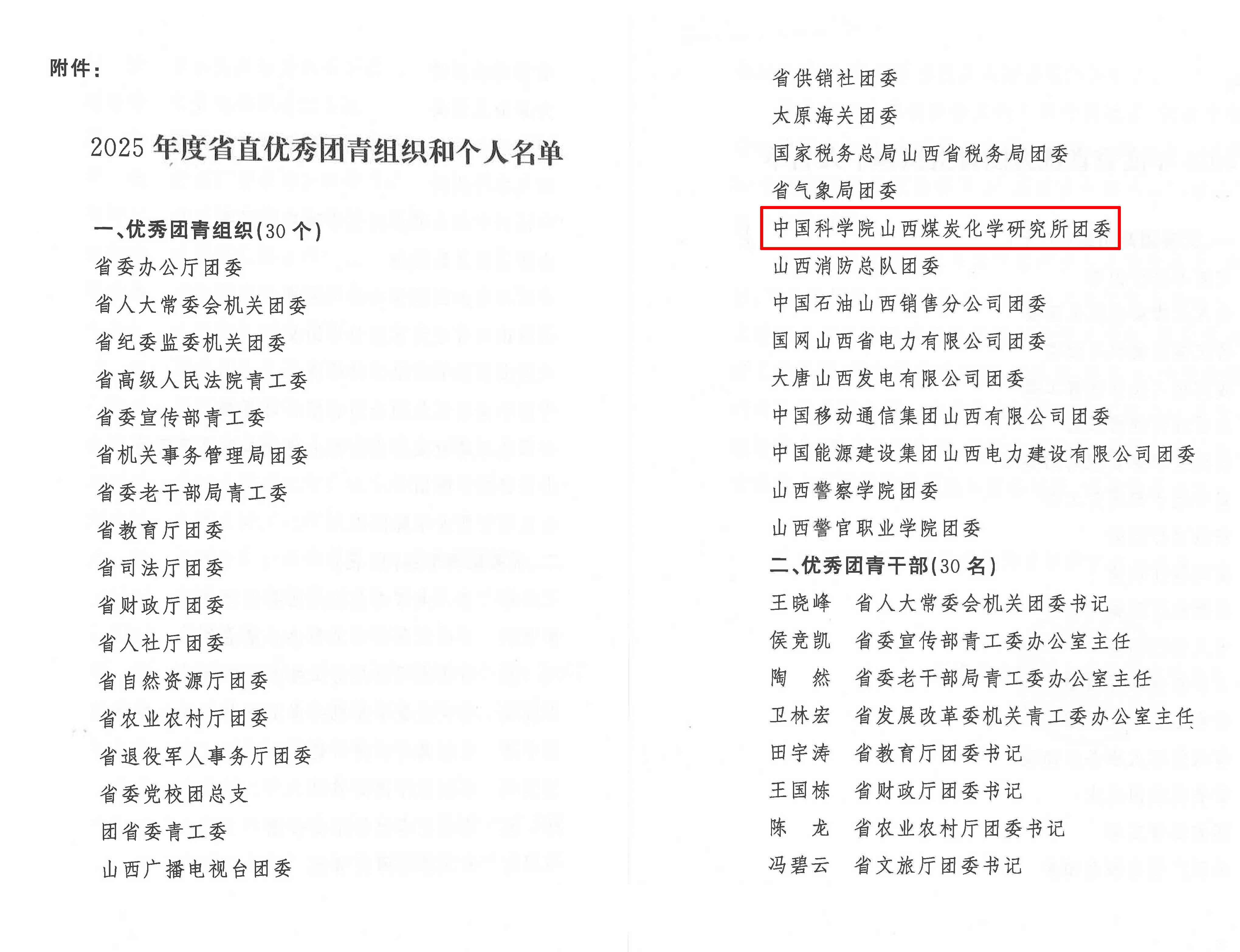 2月4日,山西省直团工委召开相关工作会议通报表扬了2025年度省直优秀团青组织和个人,山西煤化所团委被评为优秀团青组织,这是本届所团委第四次获此殊荣。