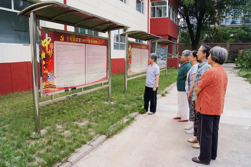为进一步帮助离退休老同志梳理党的十八大以来以习近平同志为核心的党中央在治国理政方面的重要论述,为党的十九大胜利召开营造良好氛围。“七一”前夕,离退休人员管理处搜集整理素材,对离退休人员活动中心室外三块橱窗进行了全部更新。