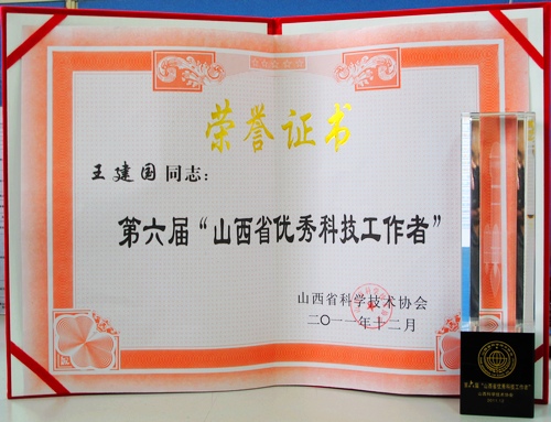 王建国所长获得第六届“山西省优秀科技工作者”称号