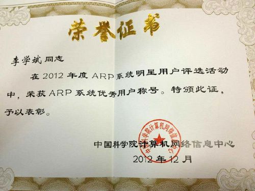 山西煤化所李学斌获中科院“2012年度ARP系统优秀用户”荣誉称号