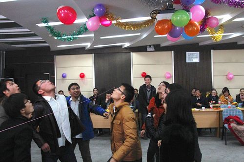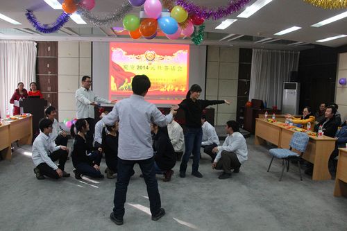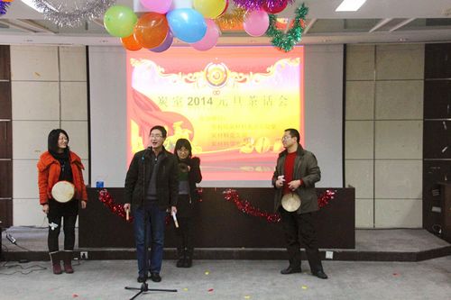 伴随着热烈的掌声,喜庆的乐曲奏响了新年的旋律。704组同学带来了歌曲串烧,705组、708组分别献上了歌曲《我的好兄弟》和《恋曲1990》,而707组为大家带来了合唱《超越梦想》。杨金华精彩的扑克魔术为茶话会披上了一种魔幻的色彩,引来在场观众的阵阵惊叹。709组的表演者将耳熟能详的《千年等一回》、《法海不懂爱》、《最炫民族风》等歌曲串烧加上妙趣横生的舞蹈引得大家阵阵喝彩,将现场气氛推向了高潮。敲锣打鼓陕西版《三句半》,语言动作幽默诙谐,更是让全场笑声不断。节目表演间还穿插了气球飞舞、绑腿赛跑、乒乓球接力赛、你比划我来猜以及抢椅子等精彩纷呈的小游戏和扣人心弦的抽奖环节。最后,茶话会以705组职工合唱的《明天会更好》落下帷幕。