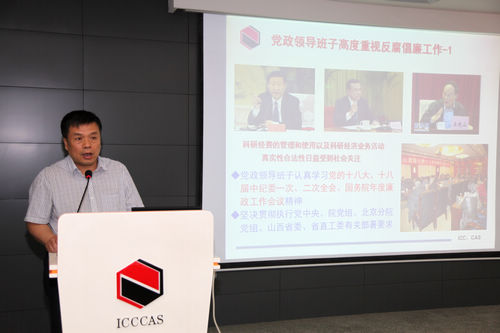 党委副书记、副所长、纪委书记李晶平代表所党政领导班子作了题为《标本兼治、综合治理、惩防并举、注重预防,扎实推进研究所反腐倡廉工作》的工作报告。报告从党政领导班子身体力行,高度重视反腐倡廉工作;突出重点,以点带面,统筹推进廉洁从业风险防控工作;完善制度、强化监督,不断加大内部审计监督工作力度;贵在坚持,重在落实,锲而不舍抓好作风建设;夯实基础,治本抓源,惩防体系建设不断深入等五个方面汇报了山西煤化所2012-2013年反腐倡廉工作的贯彻落实情况及取得的成效,并结合发生在中科院内部的典型真实案例进行反腐倡廉警示教育。参会人员认真听取报告并填写了《反腐倡廉工作民主测评表》。