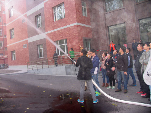 随后,行保处工作人员在能源楼前空地向大家讲解并演示了灭火器、消防水枪的正确使用方法,各位学生在现场积极进行实际操作灭火演练。演习中,大家态度认真,团结协作,密切配合,出色地完成了灭火演练工作。